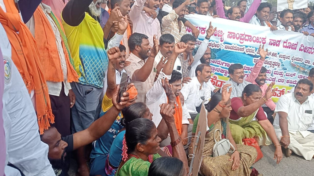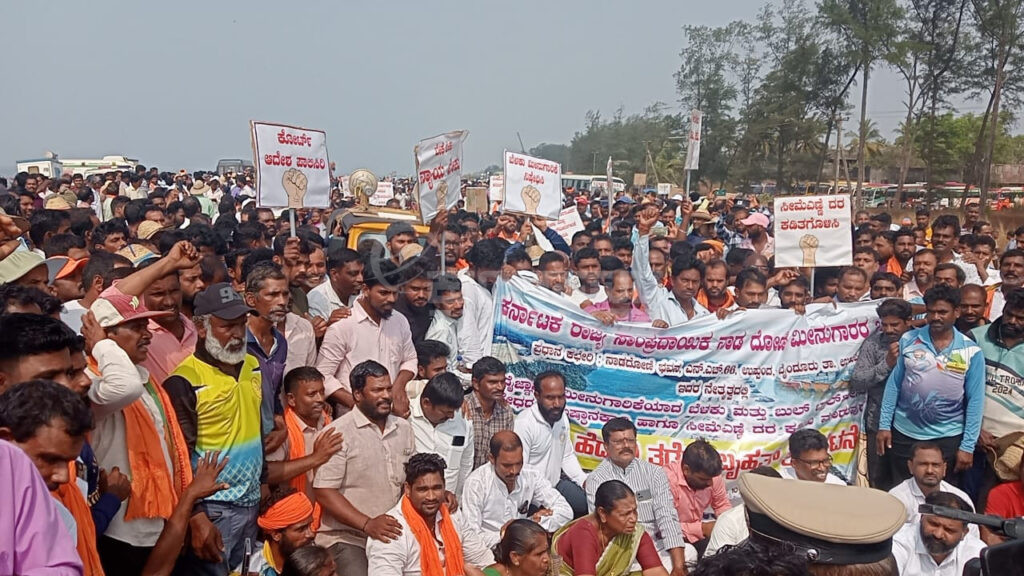ನಾಡದೋಣಿ ಮೀನುಗಾರರಿಂದ ರಾಷ್ಟ್ರೀಯ ಹೆದ್ದಾರಿ ತಡೆ