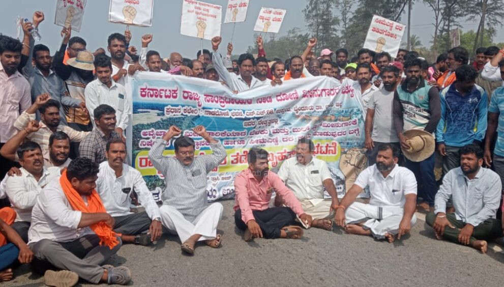 ನಾಡದೋಣಿ ಮೀನುಗಾರರಿಂದ ರಾಷ್ಟ್ರೀಯ ಹೆದ್ದಾರಿ ತಡೆ