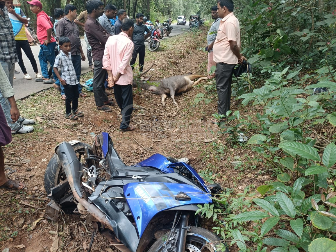 ಕುಂದಾಪುರ:ಚಲಿಸುತ್ತಿದ್ದ ಬೈಕ್ ಗೆ ಕಡವೆ ಡಿಕ್ಕಿ ಹೊಡೆದ ಘಟನೆ ಕಮಲಶಿಲೆ ಎಂಬಲ್ಲಿ ಶನಿವಾರ ನಡೆದಿದೆ.ಅಪಘಾತದ ಹೊಡೆತಕ್ಕೆ ಕಡವೆ ಸ್ಥಳದಲ್ಲಿ ಮೃತಪಟ್ಟಿದೆ.ಬೈಕ್ ಸವಾರನಿಗೆ ಗಂಭೀರ ಸ್ವರೂಪದ ಗಾಯವಾಗಿದೆ.