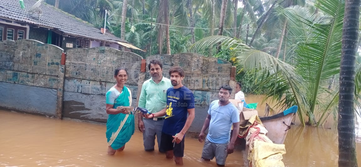 ಕುಂದಾಪುರ:ನೆರೆ ನೀರಿನಿಂದ ಜಲಾವೃತ್ತವಾಗಿರುವ ಬೈಂದೂರು ತಾಲೂಕಿನ ನಾವುಂದ ಸಾಲ್ಬುಡ ಪ್ರದೇಶಕ್ಕೆ ಬೈಂದೂರು ಪಶು ಆಸ್ಪತ್ರೆ ವೈದ್ಯಾಧಿಕಾರಿ ನಾಗರಾಜ ಖಾರ್ವಿ ಮರವಂತೆ ಮತ್ತು ಸಿಬ್ಬಂದಿಗಳು ದೋಣಿಯಲ್ಲಿ ತೆರಳಿ ದನಕರುಗಳಿಗೆ ಅಗತ್ಯವಾಗಿ ಬೇಕಾಗಿರುವ ಔಷಧಗಳನ್ನು ಶುಕ್ರವಾರ ವಿತರಿಸಿದರು.ಸ್ಥಳೀಯರಾದ ನಾಗರಾಜ ನಾವುಂದ ಸಹರಿಸಿದರು.