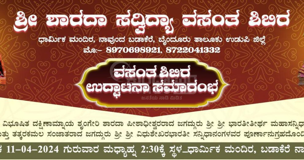 ಏಪ್ರಿಲ್.11 ರಂದು ಶ್ರೀಶಾರದಾ ಸದ್ವಿದ್ಯಾ ವಸಂತ ಶಿಬಿರ ಉದ್ಘಾಟನೆ