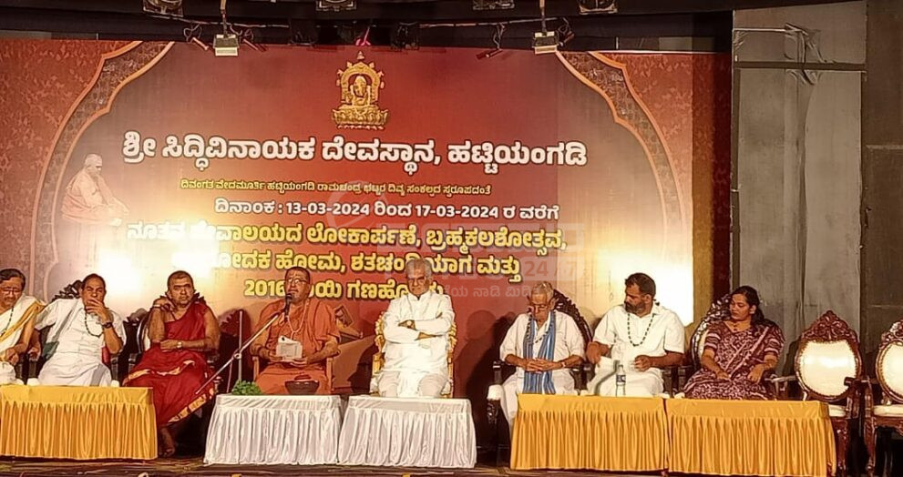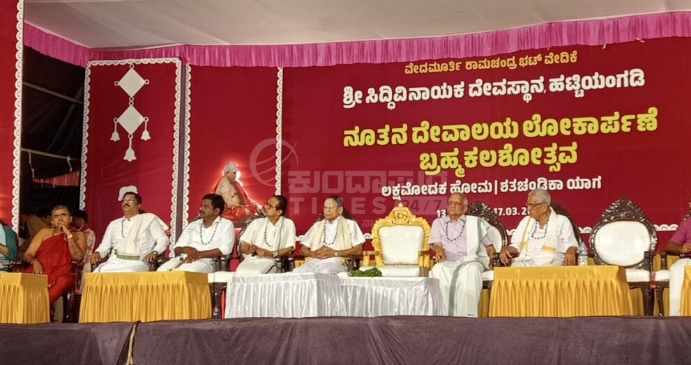 ಕುಂದಾಪುರ:ಶ್ರೀ ಸಿದ್ಧಿವಿನಾಯಕ ದೇವಸ್ಥಾನ ಹಟ್ಟಿಯಂಗಡಿ ಇದರ ನೂತನ ದೇವಾಲಯ ಲೋಕಾರ್ಪಣೆ ಬ್ರಹ್ಮಕಲಶೋತ್ಸವ ,ಲಕ್ಷ ಮೋದಕ ಹವನ,ಶತ ಚಂಡಿಯಾಗ,2016 ಕಾಯಿ ಗಣಹೋಮ ಕಾರ್ಯಕ್ರಮದ ಅಂಗವಾಗಿ ಬುಧವಾರ ಧಾರ್ಮಿಕ ಸಭಾ ಕಾರ್ಯಕ್ರಮ ಹಾಗೂ ಮಹಾ ಅನ್ನಸಂತರ್ಪಣೆ ಕಾರ್ಯಕ್ರಮ ನಡೆಯಿತು.ಧಾರ್ಮಿಕ ಸಭಾ ಕಾರ್ಯಕ್ರಮದ ಸಾನಿಧ್ಯ ವಹಿಸಿದ್ದ ಶ್ರೀ ಸುಬ್ರಹ್ಮಣ್ಯ ಮಠದ ಶ್ರೀ ವಿದ್ಯಾಪ್ರಸನ್ನ ತೀರ್ಥ ಸ್ವಾಮೀಜಿಗಳು ಆಶೀರ್ವಚನ ನೀಡಿ ಮಾತನಾಡಿ,ಕಾರವಳಿಯಲ್ಲಿರುವ ಅನೇಕ ಸನ್ನಿಧಾನಗಳು ಭಕ್ತರಿಗೆ ಭಕ್ತಿಯ ಸಿಂಚನವನ್ನು ಮಾಡುತ್ತಿವೆ.ನಮ್ಮ ಅನೇಕ ಸಿದ್ಧಾಂತಗಳು ಆಸ್ತಿಕ ಮನೋಭಾವನೆಗಳನ್ನು ಮೂಡಿಸುತ್ತವೆ.ನಾವು ಧರ್ಮ ಮಾರ್ಗ ದಿಂದ ನಡೆದರೆ […]