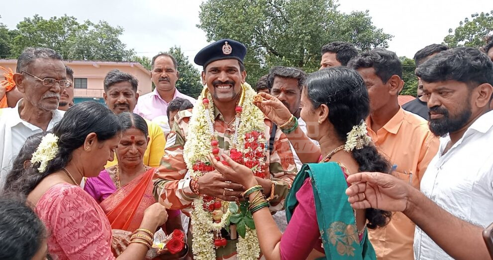 ಮುಳ್ಳಿಕಟ್ಟೆ:ಭಾರತೀಯ ಭೂ ಸೇನೆಯಲ್ಲಿ ಸಿಪಾಯಿ ಹುದ್ದೆಗೆ ಸೇರಿ ಹವಾಲ್ದಾರರಾಗಿ 21 ವರ್ಷಗಳ ಕಾಲ ಸೇವೆ ಸಲ್ಲಿಸಿ ಆ.31 ರಂದು ನಿವೃತ್ತಿ ಹೊಂದಿ ಹುಟ್ಟೂರಿಗೆ ಆಗಮಿಸಿದ ಕುಂದಾಪುರ ತಾಲೂಕಿನ ಆಲೂರು ಗ್ರಾಮದ ಕಾಳಿಕಾಂಬಾ ನಗರದ ನಿವಾಸಿ ಶಂಕರ ಆಚಾರ್ಯ ಮತ್ತು ಸುಶೀಲ ಆಚಾರ್ಯ ದಂಪತಿಗಳ ಪುತ್ರ ನಿವೃತ್ತ ಸೇನಾ ಹವಾಲ್ದಾರ್ ದಿನೇಶ್ ಆಚಾರ್ಯ ಅವರನ್ನು ಮುಳ್ಳಿಕಟ್ಟೆಯಲ್ಲಿ ಚಂಡೆಯೊಂದಿಗೆ ಆರತಿ ಬೆಳಗಿ ಅದ್ದೂರಿಯಾಗಿ ಮಂಗಳವಾರ ಸ್ವಾಗತಿಸಿಕೊಳ್ಳಲಾಯಿತು.ಭಾರತೀಯ ಸೇನೆಯಲ್ಲಿ ಸೇವೆ ಸಲ್ಲಿಸಿ ಹುಟ್ಟೂರಿಗೆ ಆಗಮಿಸಿದ ನಿವೃತ್ತ ಸೇನಾ ಹವಾಲ್ದಾರ್ ದಿನೇಶ್ ಆಚಾರ್ಯ […]